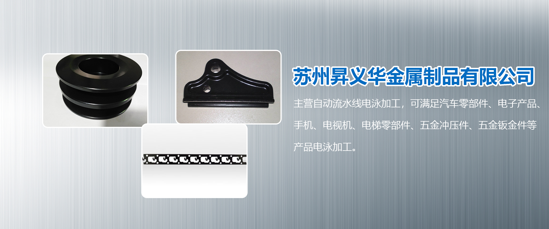 蘇州昇義華金屬制品有限公司是一家進(jìn)行各類金屬表面處理專業(yè)公司。主營自動(dòng)流水線電泳加工,可滿足汽車零部件、電子產(chǎn)品、手機(jī)、電視機(jī)、電梯零部件、五金沖壓件、五金鈑金件等產(chǎn)品電泳加工。
